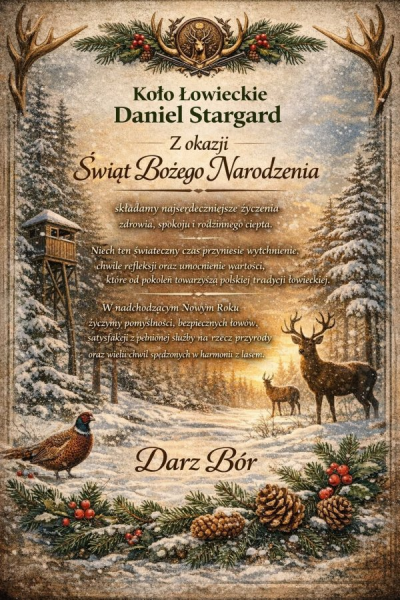Z okazji Świąt Bożego Narodzenia składamy Członkom Koła Łowieckiego „Daniel” najserdeczniejsze życzenia zdrowia, spokoju oraz pomyślności.